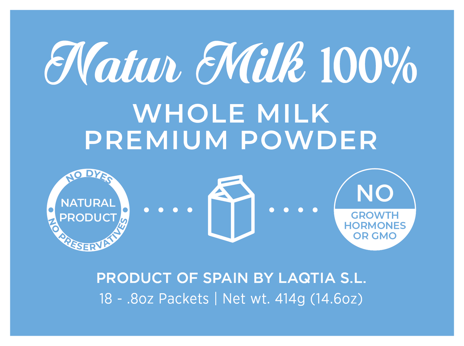 Laqtia’s premium powdered whole milk has only one ingredient, 100% European dairy, it's all natural with no preservatives. This product is natural without any artificial additives or ingredients.