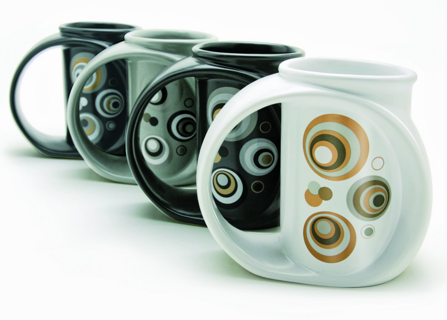 Putting on the glitz. The new Miam Miam Metallic Solar Series comes in an evolution of grey with graceful emissions of metallic silver and gold accents. Created by designer, Patricia Ryan. The Solar mug itself is designed by the award-winning industrial design team featuring Nicolas Denhez, Bruno Constans, and Philippe Vahe, and its ergonomic shape allows users to wrap their hands around the body for comfort.